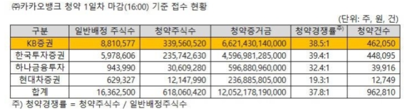 카카오뱅크 청약 경쟁률 : 카카오뱅크, 공모주 청약 첫날 경쟁률 38대1…"주가 급락 우려 ..., Mar 21, 2021 · 카카오뱅크 상장 관련주, 대장주 총정리(상장일, 증권사 등) 최근 국내에는 sk바이오사이언스가 상장되어 따상을 기록했으며, 쿠팡은 미국에 상장이 되어 시가총액 100조원을 초과하였습니다.. 대신증권, 한국투자증권, 미래에셋증권, nh투자증권, kb증권, 한화투자증권 통합경쟁률 배정이라. 지난 15~16일 전체 공모 물량의 25%인 69만4965주가 배정된 아모센스의 일반 공모주 청약에는 총 2만3514건에 약 1846만주가 접수됐다. Jun 13, 2021 · 경쟁률 예상. 570:1 (←12조/211억) 142만원당 1주, 1000만원 청약시 7주. Mar 21, 2021 · 카카오뱅크 상장 관련주, 대장주 총정리(상장일, 증권사 등) 최근 국내에는 sk바이오사이언스가 상장되어 따상을 기록했으며, 쿠팡은 미국에 상장이 되어 시가총액 100조원을 초과하였습니다.
